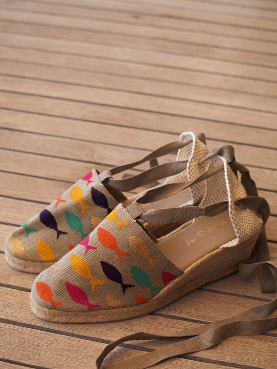 | Colourful Fish Hand-Painted Espadrilles by La Casa de La Playa – Part of the fabulous “Fish and Chic Collection” these cute vegan shoes were hand-painted in the Canary Islands of Spain |